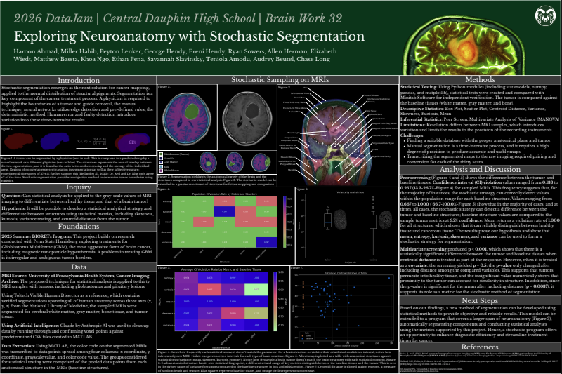Eight DataJam teams attended Data Science Day 2025, including three teams from Avonworth High School, one team from North Allegheny Senior High, one team from Hempfield High School, one team from Pittsburgh Science and Technology Academy and two teams at Central Dauphin High School who traveled all the way from Harrisburg, PA to participate in the event. The teams presented their DataJam posters, sharing the insights they gained from their DataJam projects with a wide variety of students, teachers and faculty in attendance.